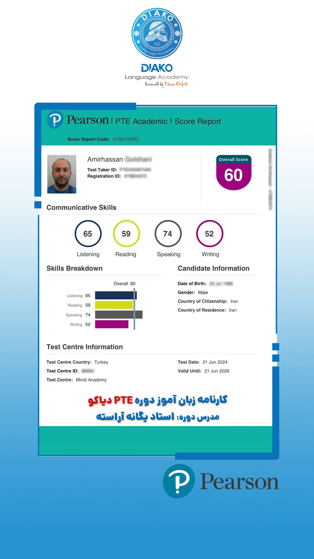 رضا زارع عزیز، با هدف مهاجرت به آلمان تو کلاسهای زبان آلمانی دیاکو شرکت کرده. فقط ۶ ماه گذشته، ولی کلی پیشرفت داشته و میگه بدون شک دیاکو رو به همه پیشنهاد میکنم.